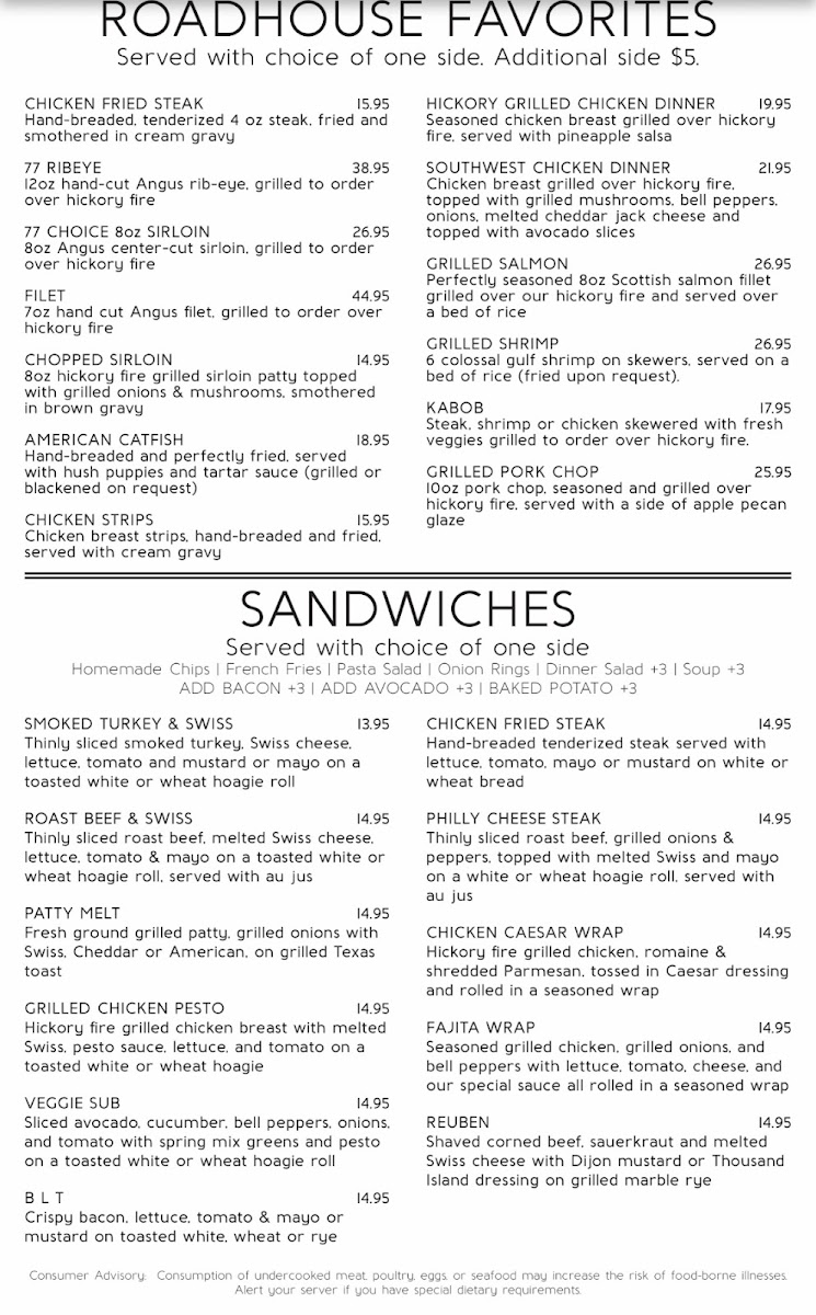 Discover the Flavorful Delights of the Roadhouse 77 Menu